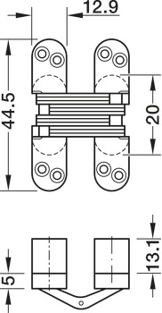 Bản lề 341.07.727, âm, cho cửa nội thất phẳng, mạ niken