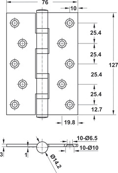 Bản lề lá 489.05.028 , 4 vòng bi, KT 127 x 76x 3 mm, màu đồng bóng