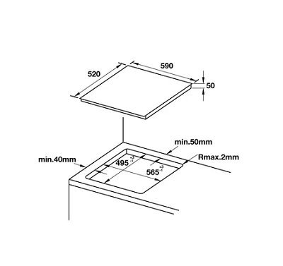 - Vùng nấu: 4 vùng nấu cảm ứng từ: 235 x 185 mm - 2,1/3,7 kW (gia nhiệt nhanh)