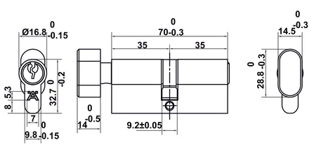 Ruột khóa 5 Pin, độ dài 70mm với núm vặn