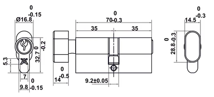 • Ruột khóa 5 Pin, độ dài 70mm với núm vặn