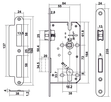 • Thân khóa cc 72mm, backset 55mm & chốt cửa có thể đảo chiều