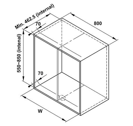 | Chiều sâu lọt lòng: Tối thiểu 470 mm |