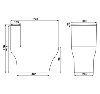 Bồn cầu một khối Hafele Kobe II 588.79.417, kích thước 720 x 385 x 730mm