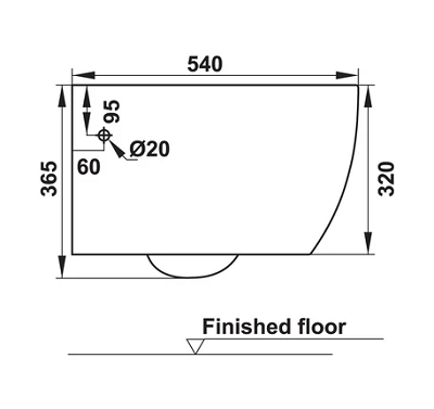 - Bồn cầu treo tường màu trắng kích thước 540x370x365 mm