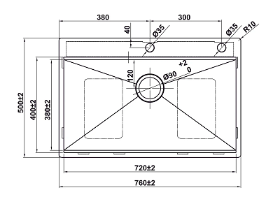 - Kích thước cắt đá (lắp nổi): 745 x 485 mm