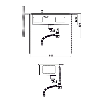 - Độ sâu bồn: 220 mm