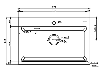 + Lắp âm: 710D x 380R mm