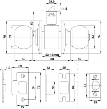 Chìa chính của bộ Tay nắm tròn 60mm 489.93.253, lớp phủ hoàn thiện sa tanh
