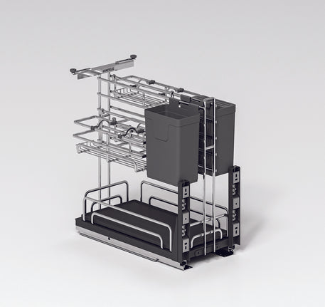 | Thiết kế công năng đa dạng để lưu trữ đồng thời gia vị, dao, thớt, đũa, thìa. Khay lưu trữ dễ dàng tháo rời để vệ sinh. |
