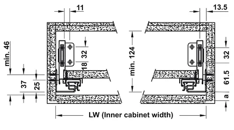 - Trọn bộ gồm: 1 cặp ray trượt mở toàn phần, 1 cặp thành hộp H80 mm, 2 bas mặt trước, 1 cặp bas ray trượt, 2 bas mặt sau và 2 nắp che với Häfele logo