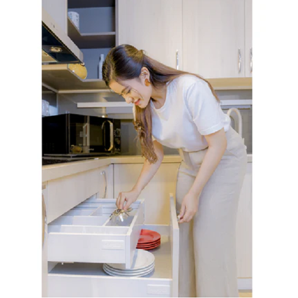 - Trọn bộ gồm: 1 cặp ray trượt mở toàn phần, 1 cặp thành hộp H135 mm, 2 bas mặt sau, 2 bas mặt trước, 1 cặp thanh nâng cấp và 2 nắp che với Häfele logo