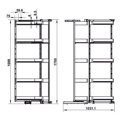 Rổ tủ đồ khô cánh bản lề Utensio Plus H2 504.68.382, KT 450 mm/≥ 412 mm/ 405 x 482 x 1700 mm