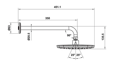 - Lưu lượng nước của sen đầu ở 3 bar: 27 lít / phút