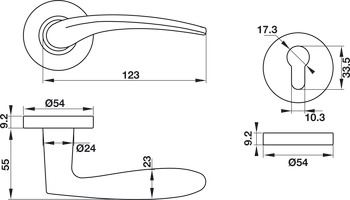Tay gạt cửa trên nắp chụp tay nắm 903.98.141, bộ PC, inox mờ