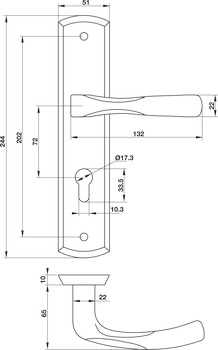 Bộ tay nắm cửa 903.98.162, dòng Coastal, tay nắm gạt bằng gang, inox, mờ