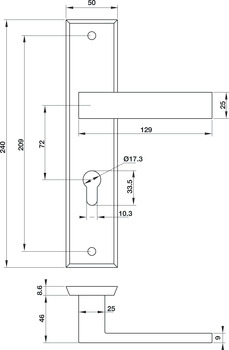 Tay nắm gạt đế dài 903.98.463, Inox, Startec, hướng cửa : mở về bên phải