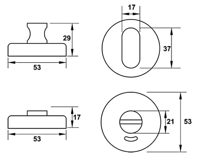 Trọn bộ gồm: 1 Thân khóa, 1 bas mặt thân khóa, 1 bas thân khóa, 1 bộ nắp chụp WC, 1 bộ vít
