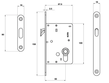 Đóng gói: 1 Thân khóa, 1 bas thân khóa, 1 cặp tay nắm âm