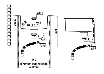 - Độ sâu bồn: 200 mm