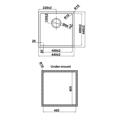 + Lắp âm: 405D x 405R mm