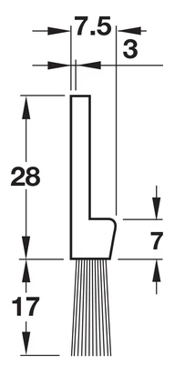 DIY Thanh chắn bụi Hafele 489.97.112 dạng chổi, dán keo, màu nâu, dài 1000mm