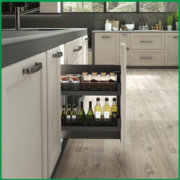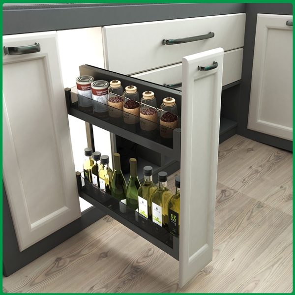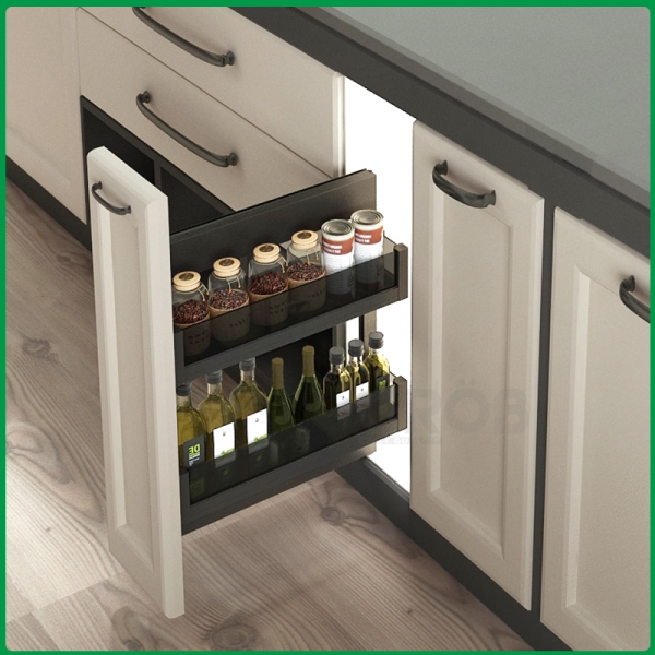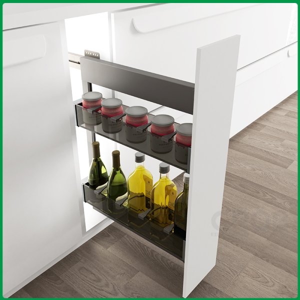 Ngoài ra còn có thể đựng gia vị ở khu vực hai bên bếp nấu như một chiếc túi thần kỳ nhỏ gọn, để bạn dễ dàng tiếp cận với những chai lọ gia vị nhỏ nhắn, những loại thảo mộc khô… Với chiếc kệ này, bạn có thể thuận tiện kéo ra- đẩy vô trong lúc nấu ăn cho cả gia đình.