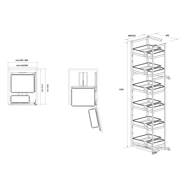 - Kích thước: W556*D500*H (1550-1850) (5 tầng – 10 rổ )