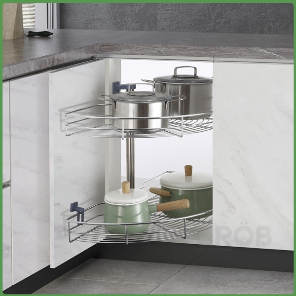 Mâm xoay tủ bếp được đánh giá là giải pháp tiết kiệm tối đa không gian tốt nhất. Đặt biệt, mâm xoay góc inox mở ½ là phụ kiện tủ bếp thông minh thiết kế xoay 180 độ được sử dụng cho góc chết 1 bên bị khuất không mở hoàn toàn được.