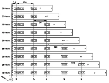 - Trọn bộ gồm: 1 cặp ray trượt , 2 vít bắt gỗ và 6 vít Euro