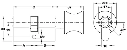 Ruột khóa WC Hafele 916.96.456, Chiều dài A: 32.5 B: 32.5 C: 65