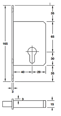 Thân khóa cửa trượt Hafele 911.26.277, màu inox mờ