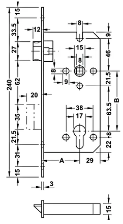 Thân khóa lưỡi gà chốt chết Hafele BS 45/85mm 911.02.165