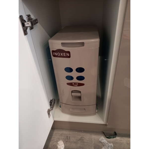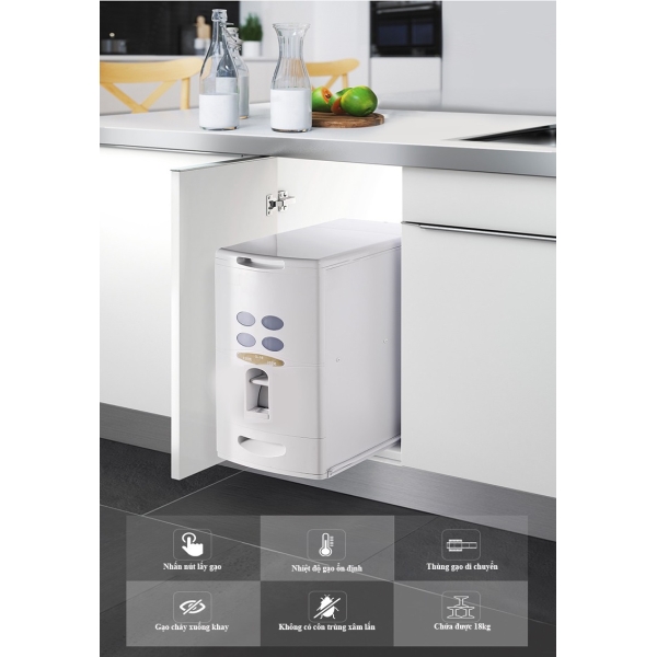 - Thùng gạo Inoxen RBA-300M được lắp đặt trong tủ bếp nên không gây mất mỹ quan như thùng đựng gạo thông thường và việc kéo thùng gạo ra vào cũng rất thuận tiện.