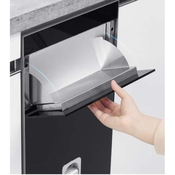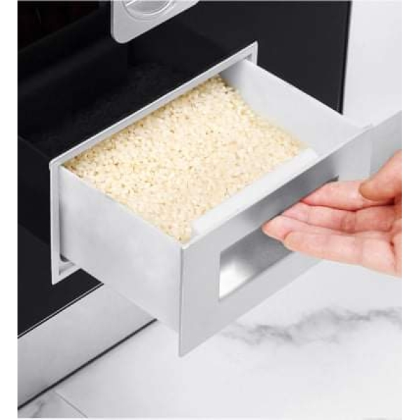 - Thùng gạo nút nhấn được lắp đặt trong tủ bếp nên không gây mất mỹ quan như thùng đựng gạo thông thường và việc kéo thùng gạo ra vào cũng rất thuận tiện.