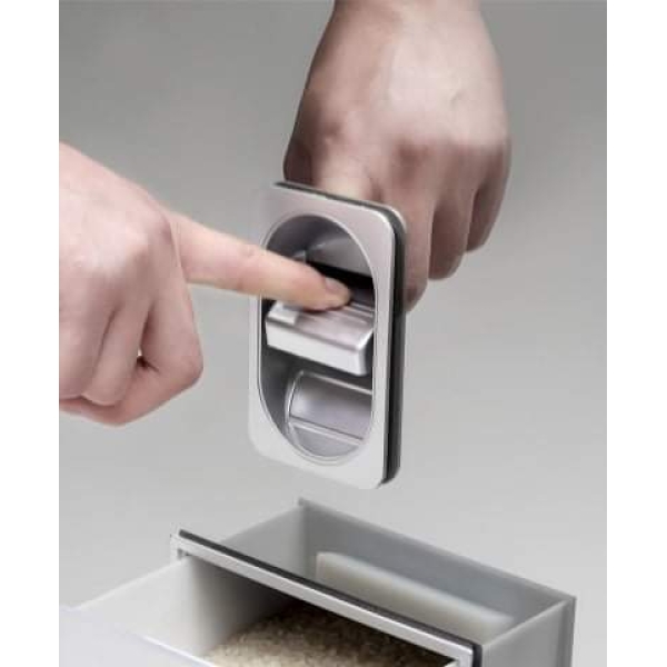 - Thùng gạo nút nhấn được lắp đặt trong tủ bếp nên không gây mất mỹ quan như thùng đựng gạo thông thường và việc kéo thùng gạo ra vào cũng rất thuận tiện.