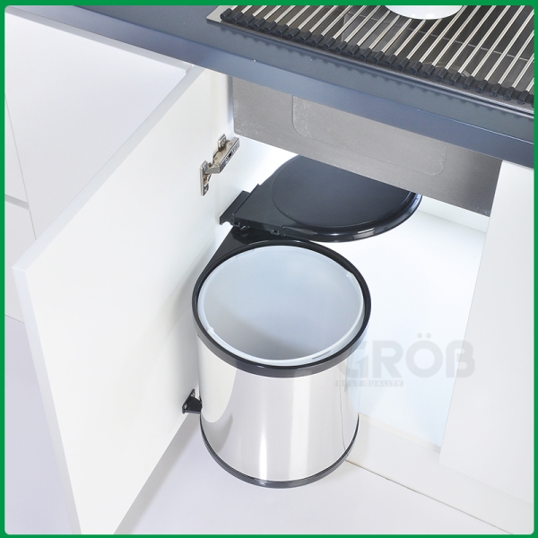 • Khi mở cửa tủ, thùng rác tự động trượt ra giúp bạn dễ dàng sử dụng mà không cần thao tác thêm.