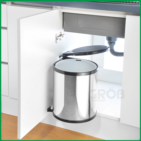 Khi mở cửa tủ, thùng rác tự động trượt ra giúp bạn dễ dàng sử dụng mà không cần thao tác thêm.