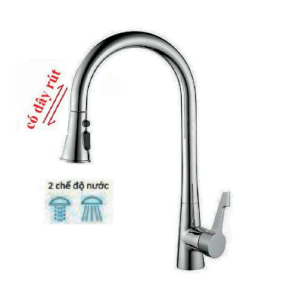 Vòi rửa chén rút dây nóng lạnh CL: Đồng Thau mạ Crom, Niken