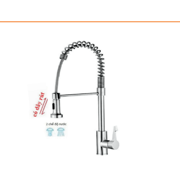 - Loại vòi rửa: Vòi rửa chén lò xo nóng lạnh