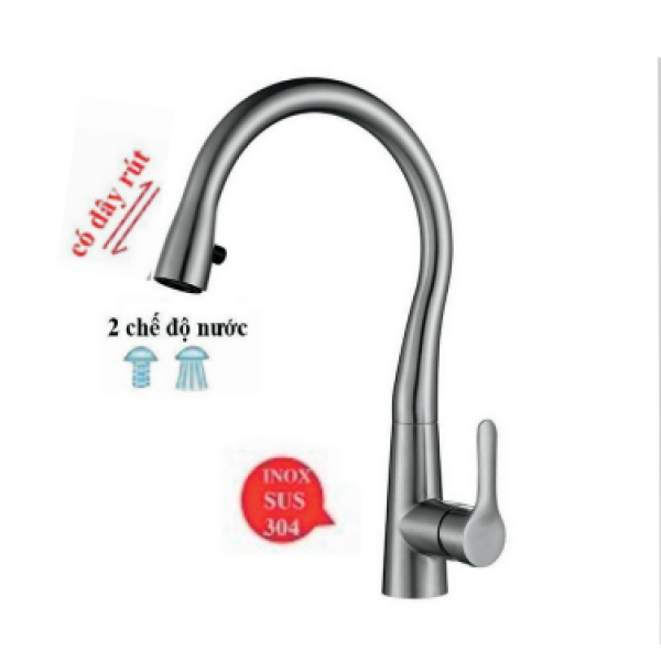 - Chất Liệu Inox SUS 304: Sản phẩm sử dụng chất liệu Inox SUS 304, nổi tiếng với độ bền và khả năng chống ăn mòn, giúp bảo vệ vòi rửa chén khỏi tác động của nước và các yếu tố khác trong môi trường bếp.